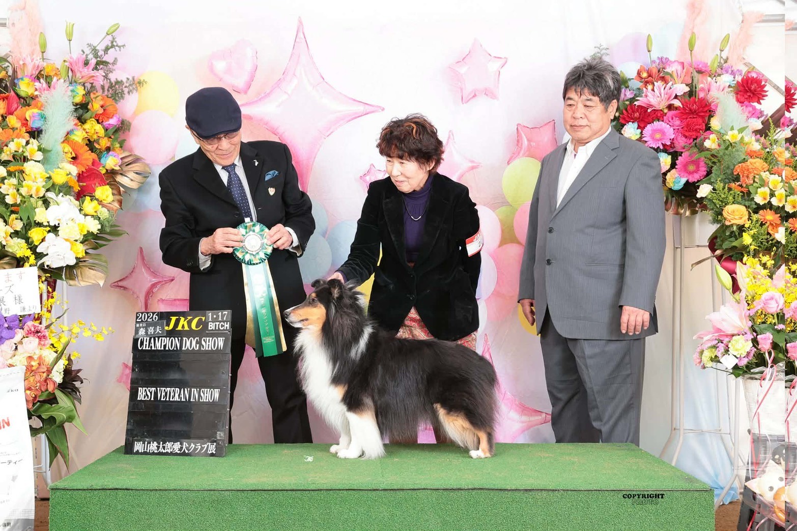 可愛い表情で、笑顔を届けてくれました。ショードッグとして活躍されているピアノちゃんは、先月開催された2つのショーでビッグタイトルを受賞されました。大きな素敵なロゼッタも見せていただきました。